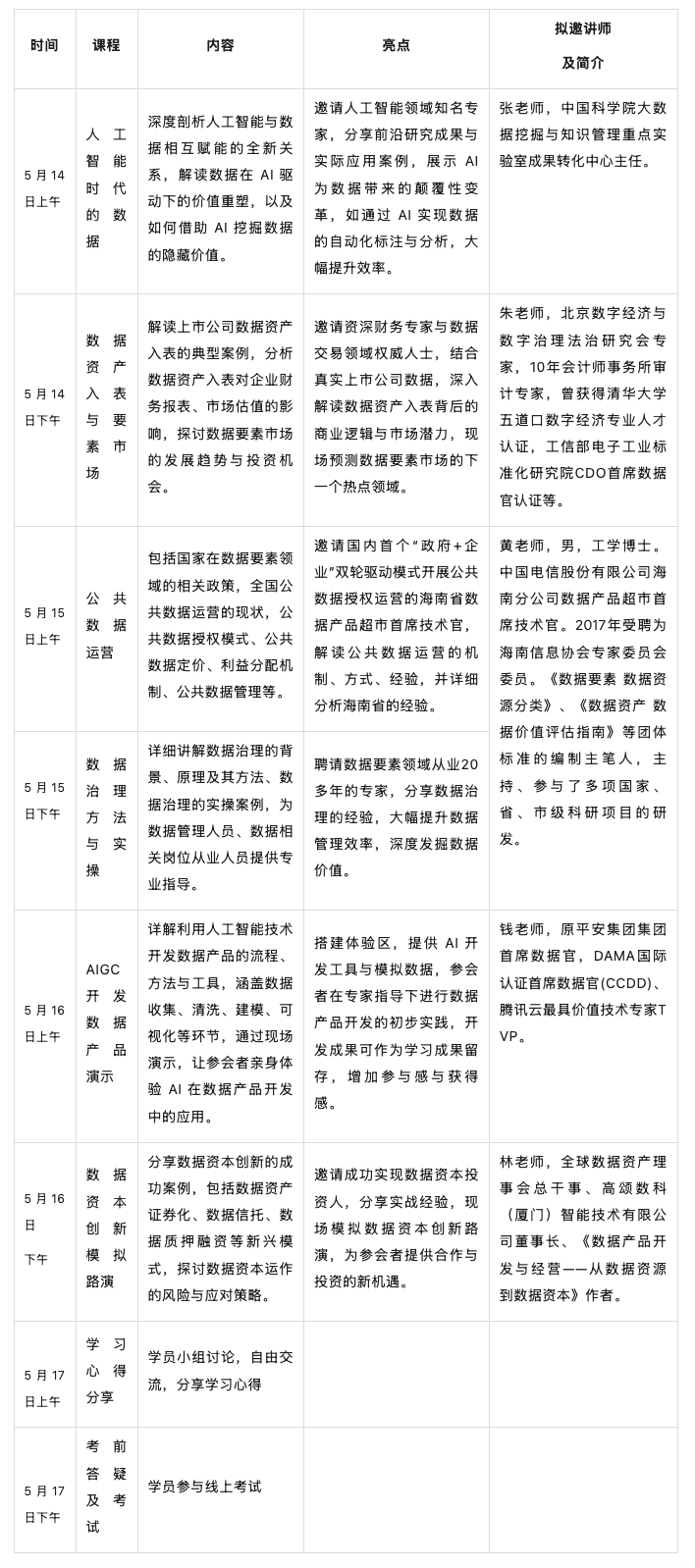 研修班涵盖了公共数据授权运营的理论与实践、数据治理体系构建与运行、数据质量控制与安全保障、个人信息保护合规审计的要素框架及控制要点、数据创新应用案例和个人信息保护合规审计案例解析等多方面内容。我们将持续邀请业内知名专家、学者和实践者进行授课,分享他们在数据治理领域的丰富经验和最新研究成果。